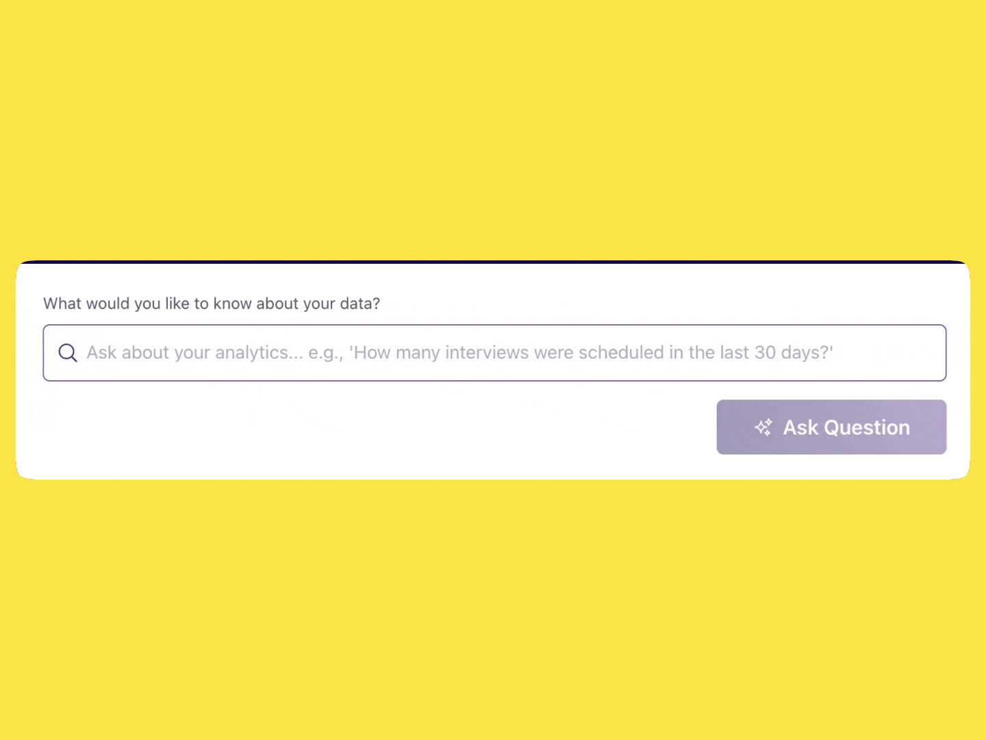 Everything starts with a simple question. Ask it the way you’d ask a teammate: “What’s our average time to interview this quarter?” or “Which interviewers declined the most invites?”